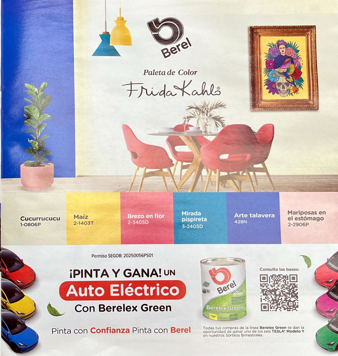 La empresa mexicana BEREL, fabricante y comercializadora de pinturas y recubrimientos, ha propuesto una nueva paleta de colores inspirada en la vida de la famosa pintora FRIDA KAHLO. Con esta propuesta se pretende que, quienes vayan a diseñar algún espacio, lo hagan con un lenguaje colorido mexicano, con alma y carácter.